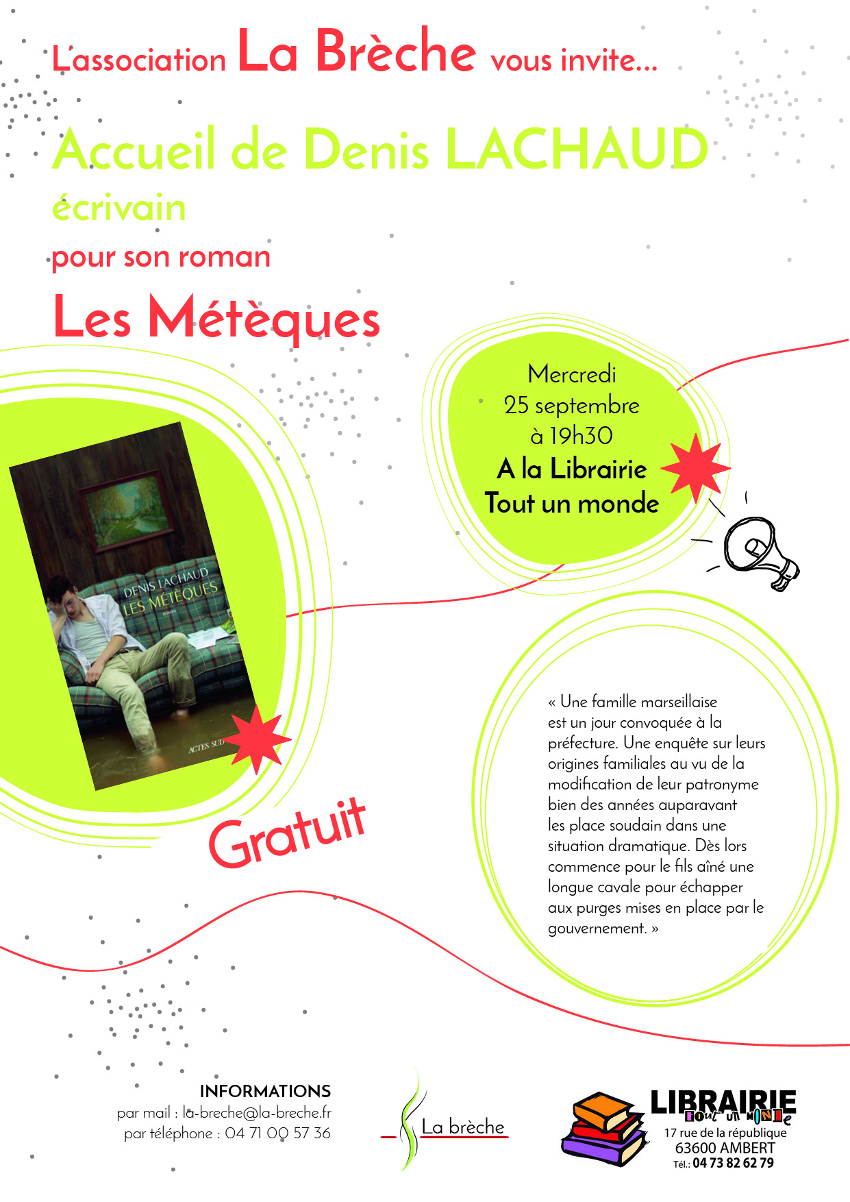 Mercredi 25 septembre, nous avons accueilli Denis Lachaud écrivain, pour son dernier livre, Les Métèques.